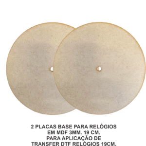 2 PLACAS BASE PARA RELÓGIOS EM MDF 3MM. 19 CM. PARA APLICAÇÃO DE TRANSFER DTF RELÓGIOS 19CM. REF.: PBR19