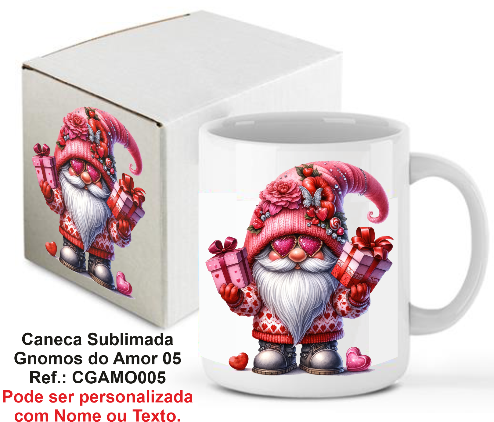 CANECA SUBLIMADA GNOMOS DO AMOR 05 – 300 ML. REF.: CSGAMO005 C/CAIXA DE CARTÃO