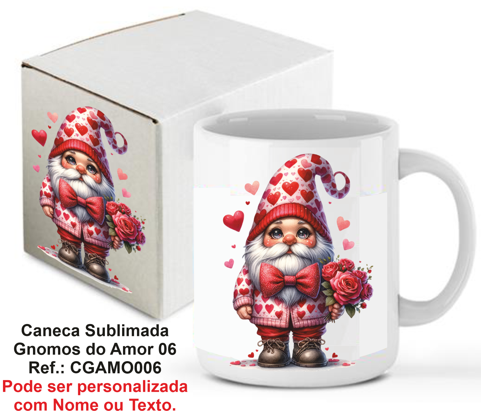 CANECA SUBLIMADA GNOMOS DO AMOR 06 – 300 ML. REF.: CSGAMO006 C/CAIXA DE CARTÃO