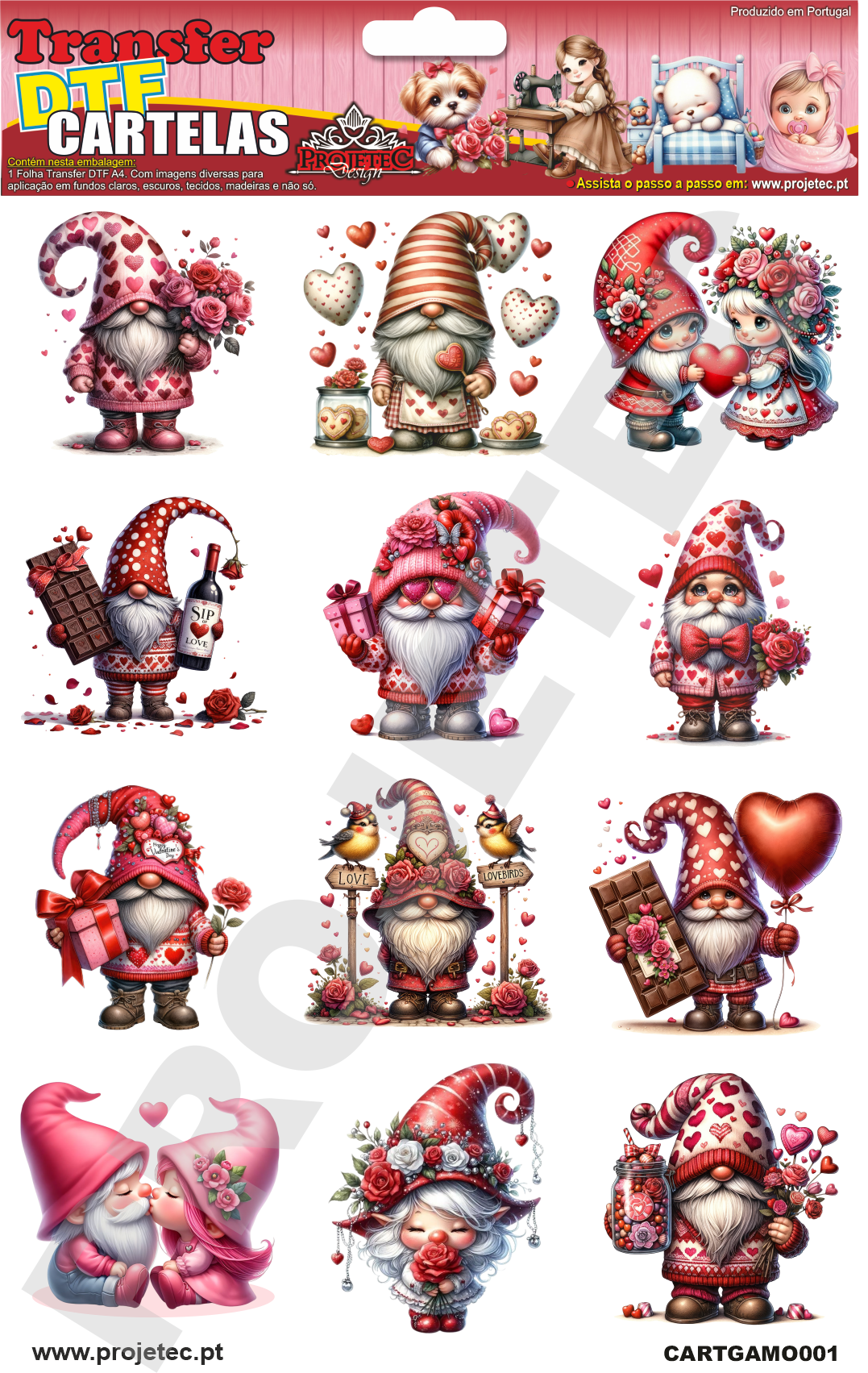 DTF TRANSFER CARTELAS GNOMOS DO AMOR 01 – A4 – REF.: CARTGAMO001
