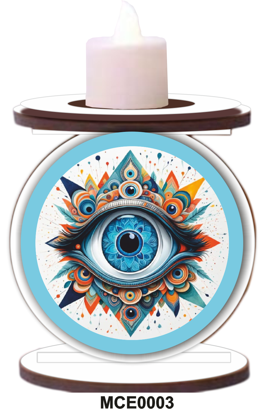MINI CASTIÇAL ESOTÉRICO 03 – EM MDF CRU 3MM, 2 PLACAS MDF BRANCO 3MM SUBLIMADO E 2 PAPÉIS PARA SUBLIMAÇÃO – REF.: MCE003