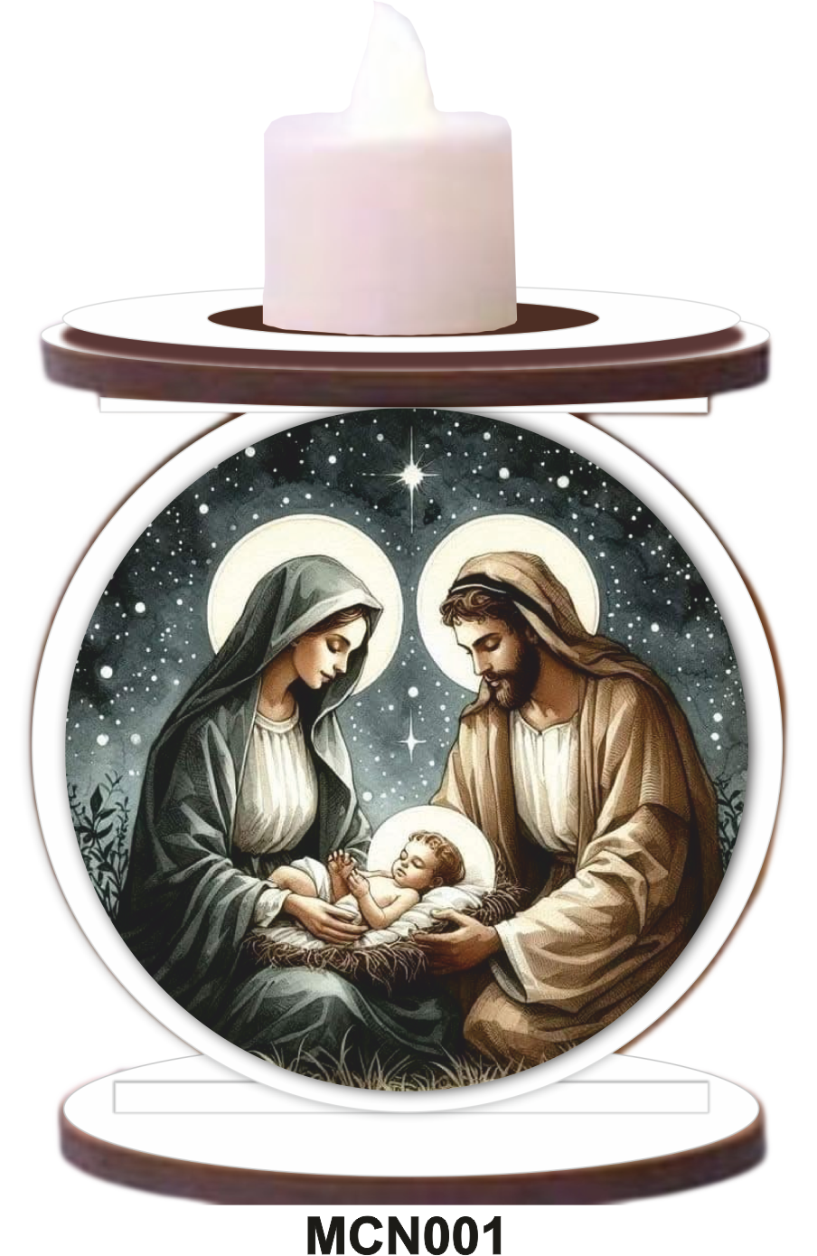 MINI CASTIÇAL NATAL 01 – EM MDF CRU 3MM, 2 PLACAS MDF BRANCO 3MM SUBLIMADO E 2 PAPÉIS PARA SUBLIMAÇÃO – REF.: MCN001