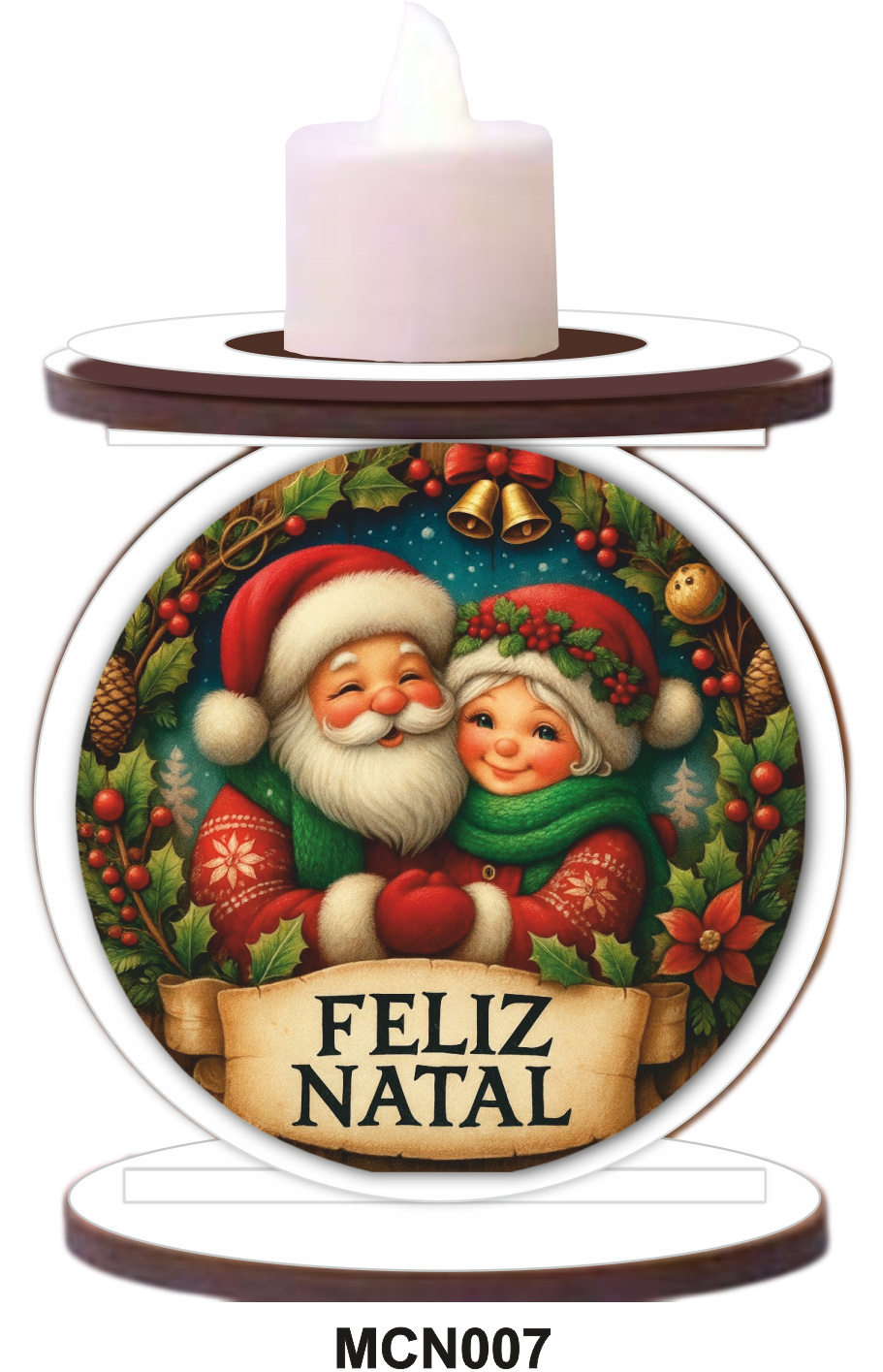 MINI CASTIÇAL NATAL 07 – EM MDF CRU 3MM, 2 PLACAS MDF BRANCO 3MM SUBLIMADO E 2 PAPÉIS PARA SUBLIMAÇÃO – REF.: MCN007