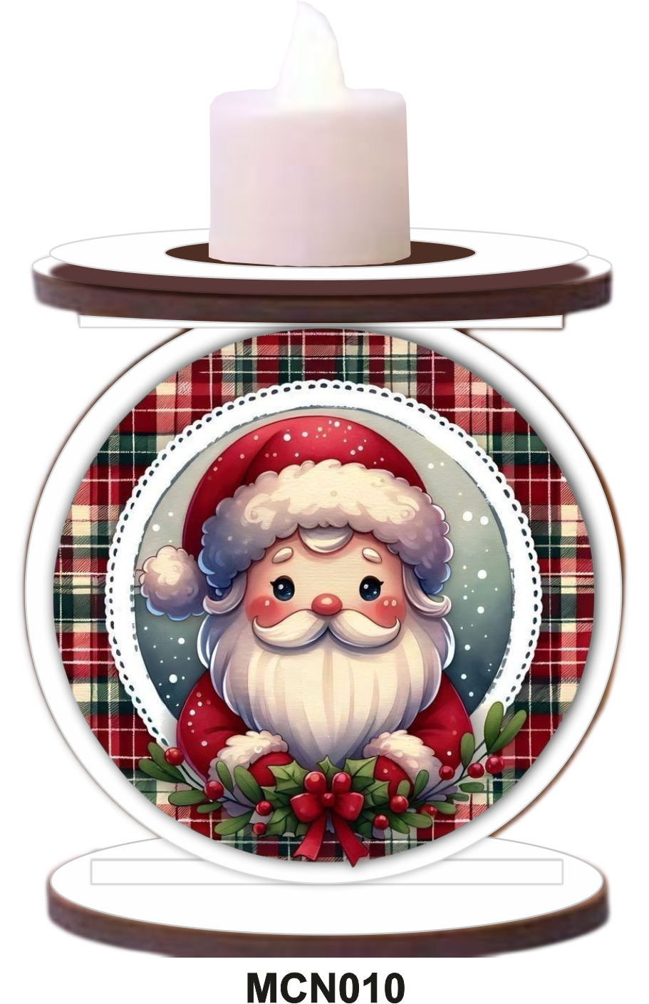 MINI CASTIÇAL NATAL 10 – EM MDF CRU 3MM, 2 PLACAS MDF BRANCO 3MM SUBLIMADO E 2 PAPÉIS PARA SUBLIMAÇÃO – REF.: MCN010
