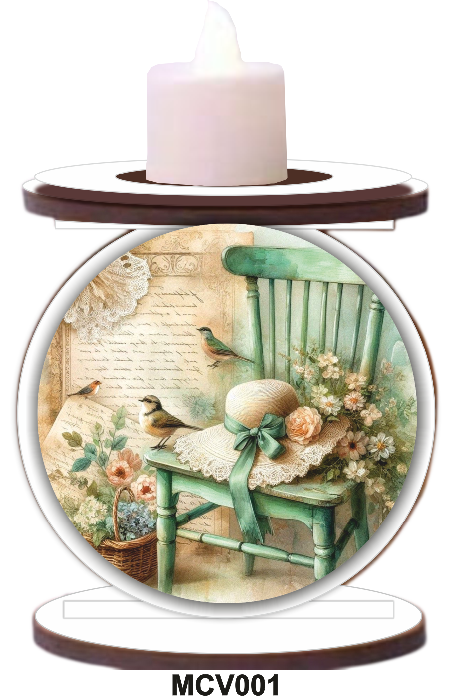 MINI CASTIÇAL VINTAGE 01 – EM MDF CRU 3MM, 2 PLACAS MDF BRANCO 3MM SUBLIMADO E 2 PAPÉIS PARA SUBLIMAÇÃO – REF.: MCV001