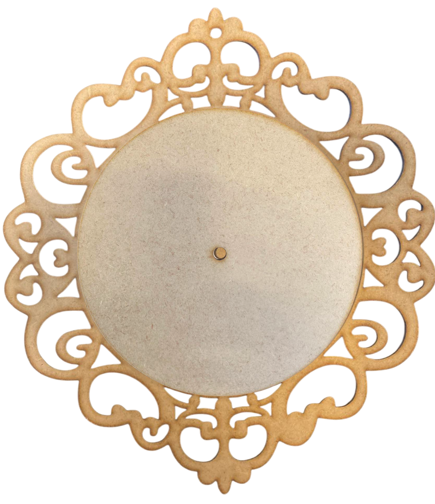 MOLDURA RELÓGIO 01 EM MDF 3MM. PLACA 30X33CM E BASE PARA RELÓGIO 19CM. PARA APLICAÇÃO DE TRANSFER DTF RELÓGIOS 19CM.