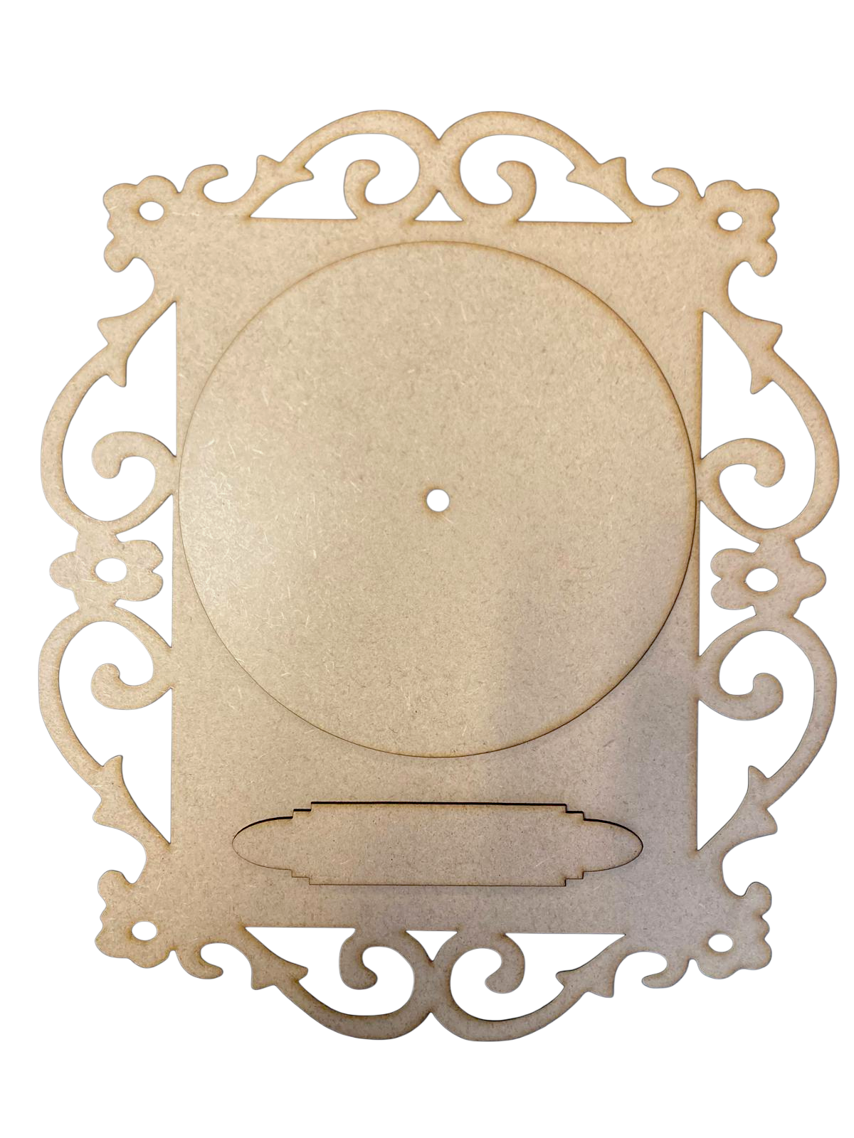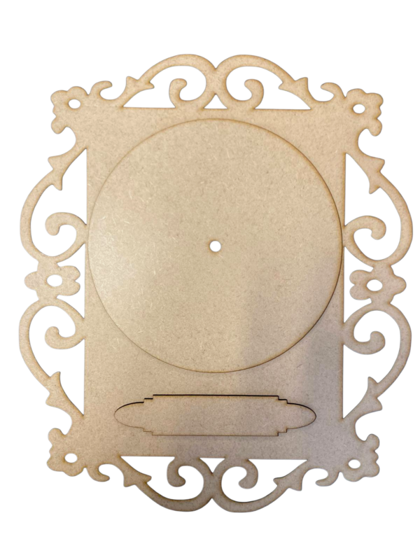 MOLDURA RELÓGIO 03 EM MDF 3MM. PLACA 30X35CM E BASE PARA RELÓGIO 19CM. PARA APLICAÇÃO DE TRANSFER DTF RELÓGIOS 19CM.