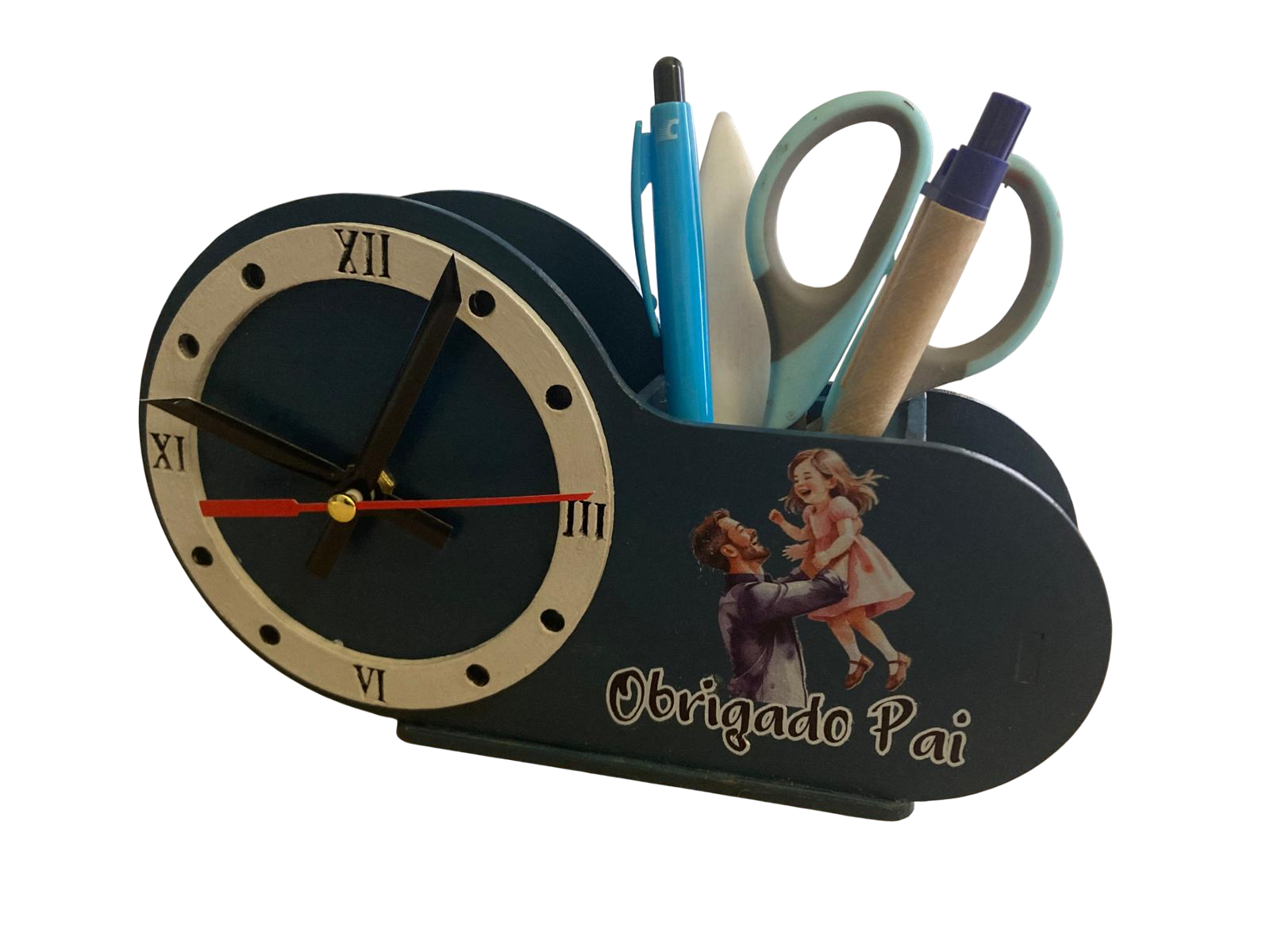 PORTA LÁPIS RELÓGIO 19X11CM.  EM MDF CRÚ 3MM. DESMONTADO E SEM A MÁQUINA DE RELÓGIO. PODE SER UTILIZADO PARA VÁRIAS APLICAÇÕES TÉCNICAS, PRENDA E DECORAÇÃO.  PARA A MONTAGEM DA PEÇA, INDICAMOS A COLA SUPER DA PROJETEC DESIGN, POR SER MUITO MAIS RÁPIDA E FÁCIL.