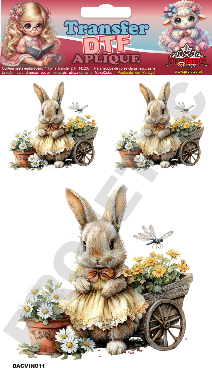 TRANSFER DTF APLIQUE COELHINHOS VINTAGE 11 – 14X20CM. – REF: DACVIN011