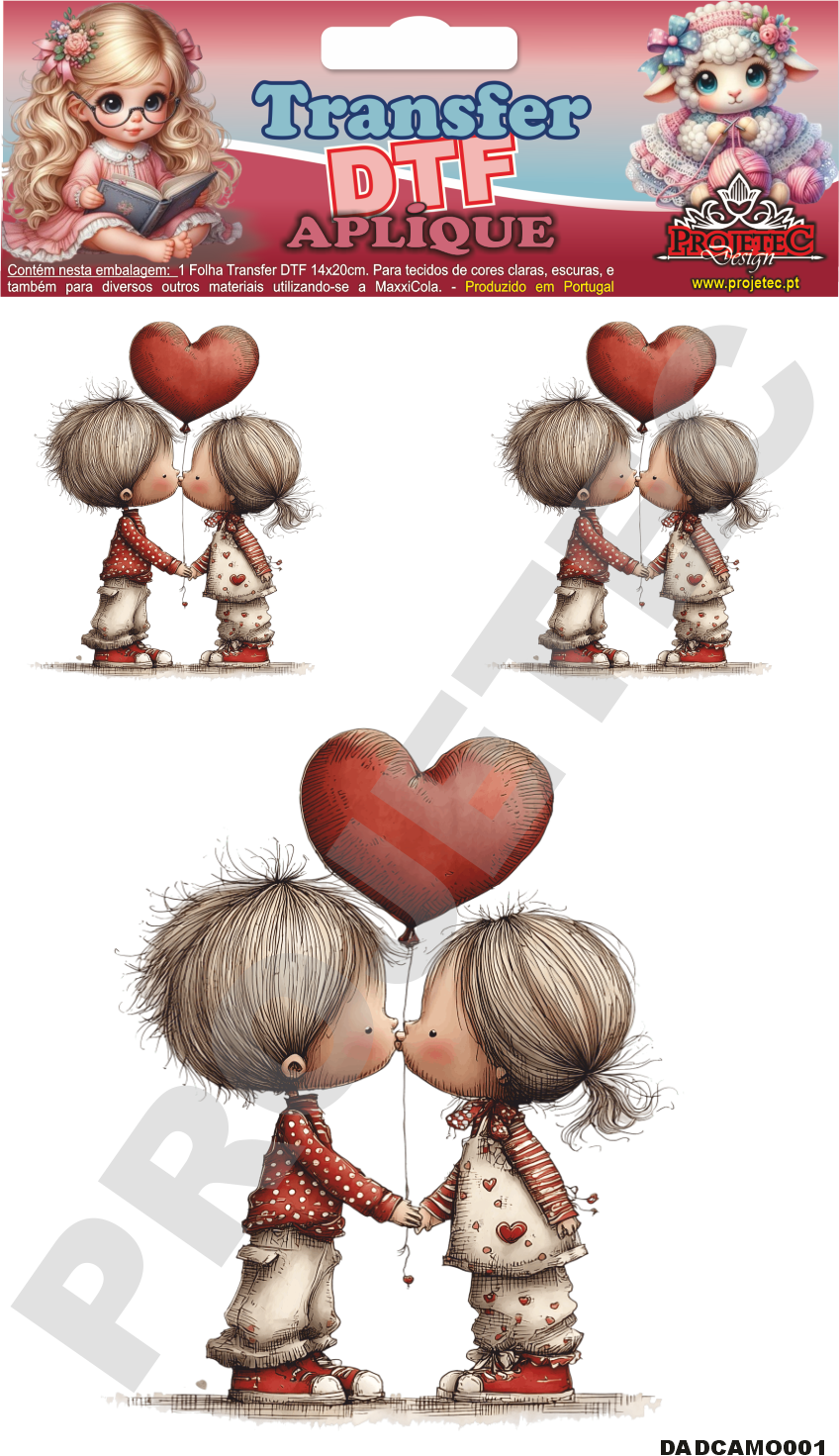 Transfer DTF, é uma nova tecnologia de transferência de imagem para tecidos de qualquer tipo e cor, e agora também pode ser utilizado e retirado à frio, com  a MaxxiCola  e impermeabilizado com o Verniz VitraLux, ambos da Projetec Design.  Pode também ser utilizado em madeira, MDF Cru ou lacado de qualquer cor.  Transferência rápida por calor, com a utilização de ferro de engomar ou prensa térmica.  Rápida transferência sem a necessidade de acabamentos posteriores.