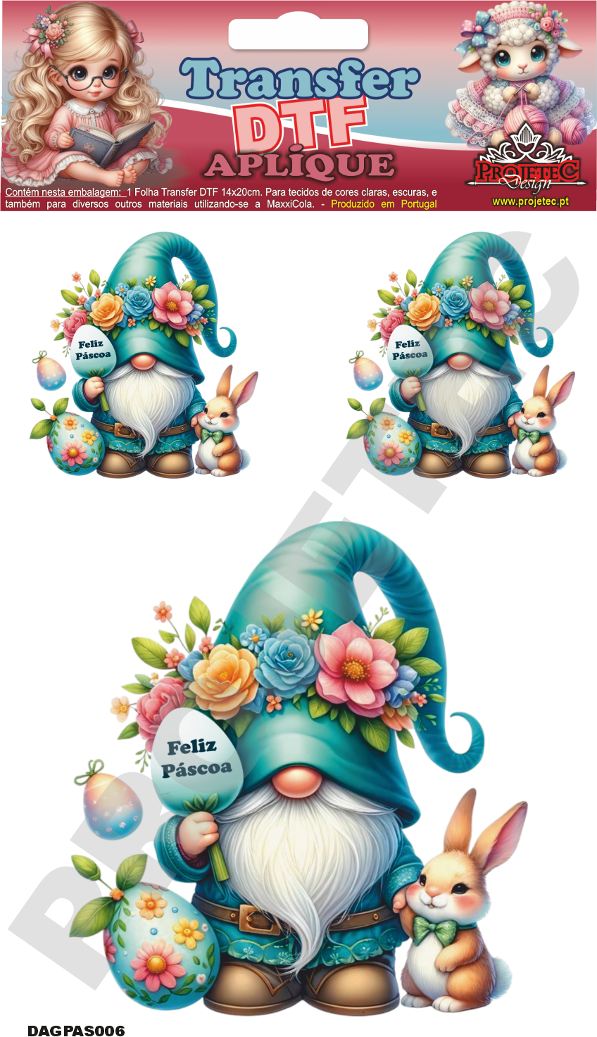 TRANSFER DTF APLIQUE GNOMOS DE PÁSCOA 06 – 14X20CM. – REF: DAGPAS006