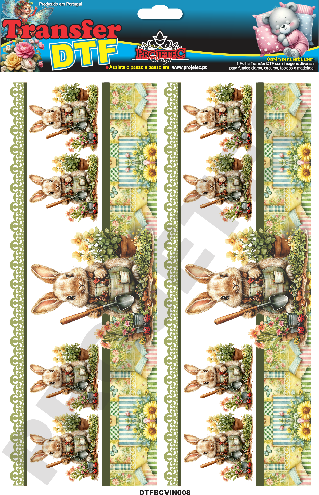 TRANSFER DTF BARRADINHOS COELHINHOS VINTAGE 08 – A4C/2 PARTES – REF: DTFBCVIN008