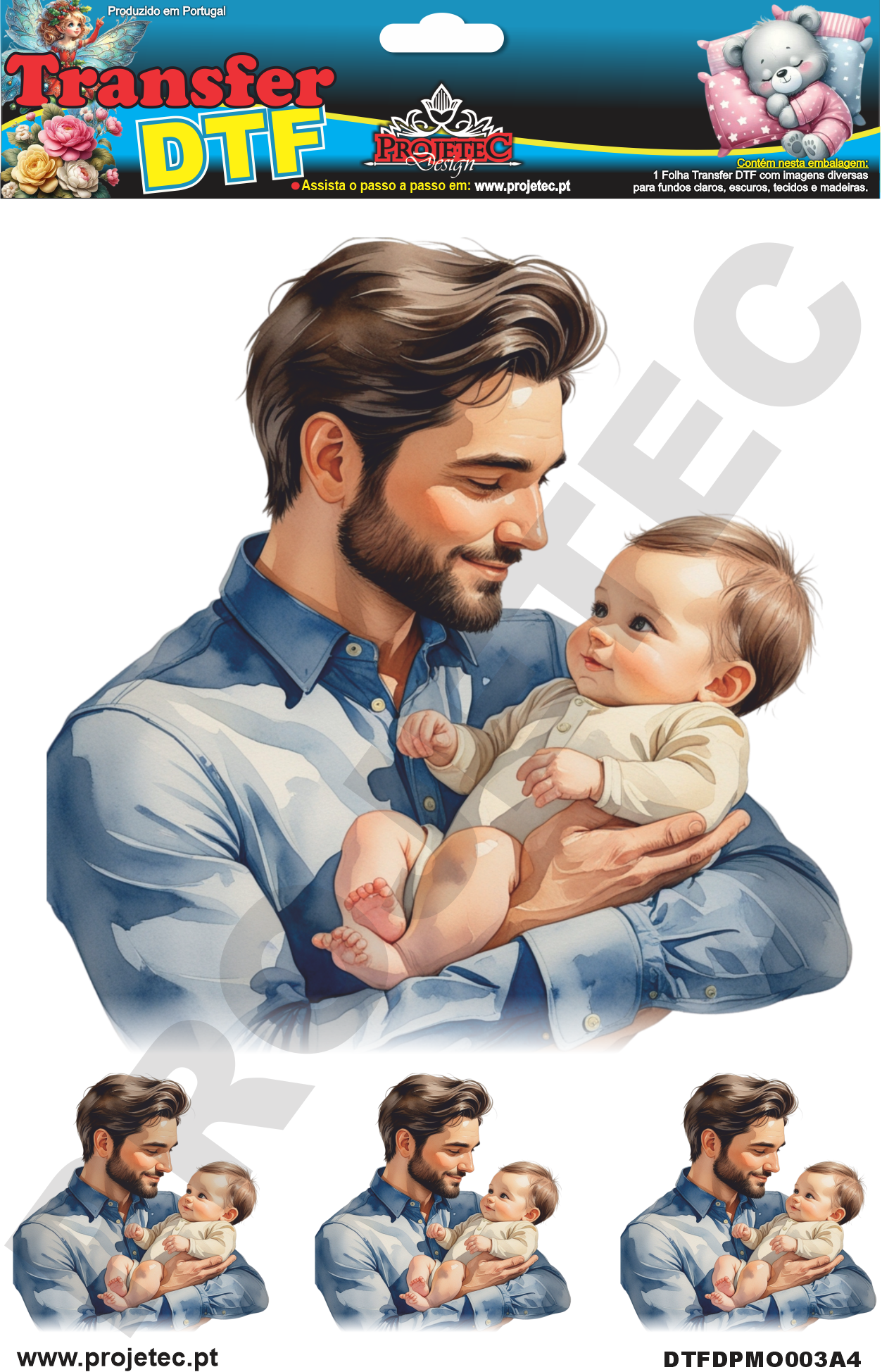 Transfer DTF, é uma nova tecnologia de transferência de imagem para tecidos de qualquer tipo e cor, e agora também pode ser utilizado e retirado à frio, com  a MaxxiCola  e impermeabilizado com o Verniz VitraLux, ambos da Projetec Design.  Pode também ser utilizado em madeira, MDF Cru ou lacado de qualquer cor.  Transferência rápida por calor, com a utilização de ferro de engomar ou prensa térmica.  Rápida transferência sem a necessidade de acabamentos posteriores.