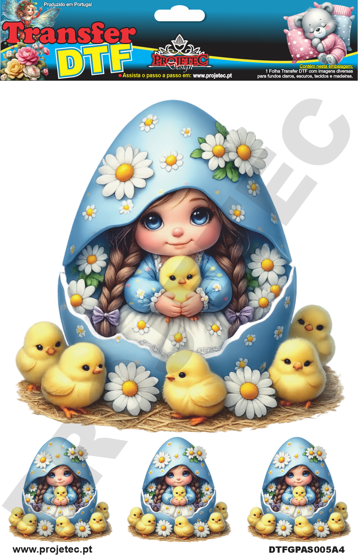 Transfer DTF, é uma nova tecnologia de transferência de imagem para tecidos de qualquer tipo e cor, e agora também pode ser utilizado e retirado à frio, com  a MaxxiCola  e impermeabilizado com o Verniz VitraLux, ambos da Projetec Design.  Pode também ser utilizado em madeira, MDF Cru ou lacado de qualquer cor.  Transferência rápida por calor, com a utilização de ferro de engomar ou prensa térmica.  Rápida transferência sem a necessidade de acabamentos posteriores.