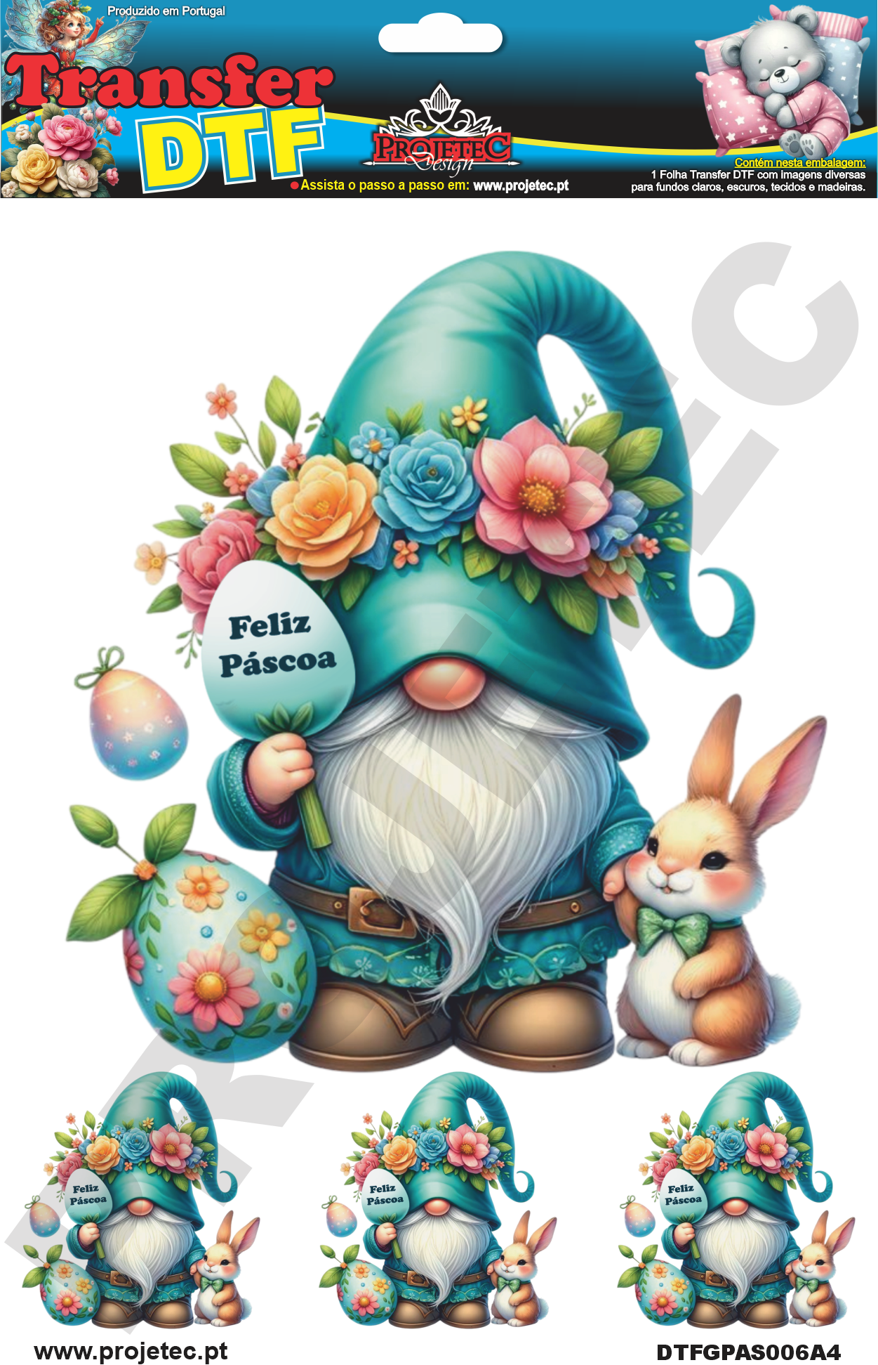 TRANSFER DTF GNOMOS DE PÁSCOA 06 – A4 REF: DTFGPAS006A4
